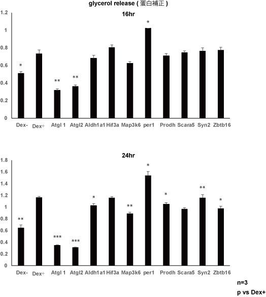3T3-L1脂肪細胞に対するdexamethasone添加実験 脂質分解 実験4