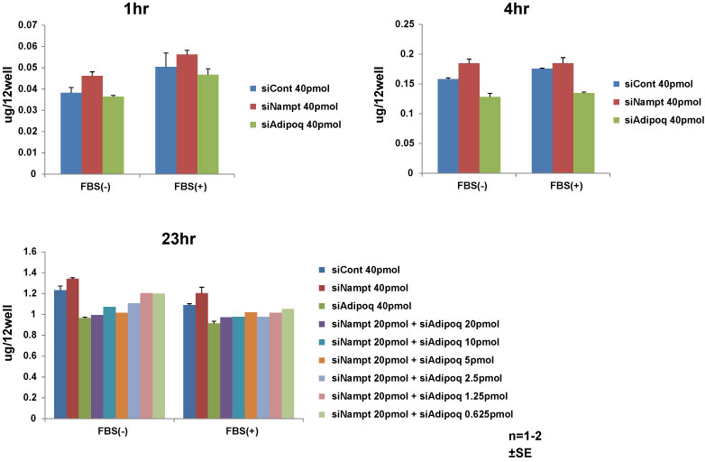 transfection→23時間後培地交換(抗生物質+)→24時間後PBSで1回wash→DMEM(H)/±10%FBSで1-23hr培養