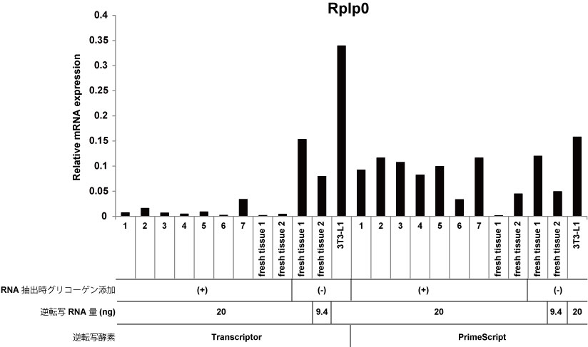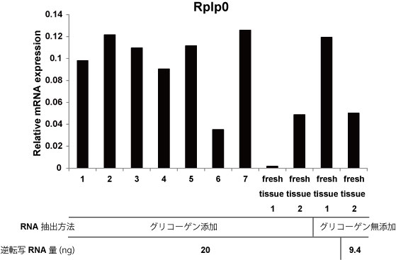 ・グリコーゲン添加してRNA抽出すると、Transcriptorの逆転写効率が著減する。