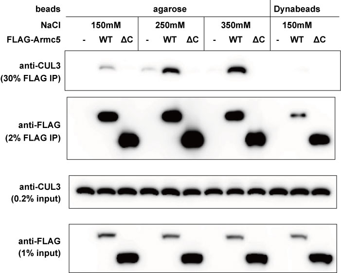 ・anti-FLAG (Sigma, F3165, Lot: 60K9163), 1ul, 90min→Dynabeads Protein G (Thermo, 10003D, Lot: 162432120), 30ul, 2.5hr
