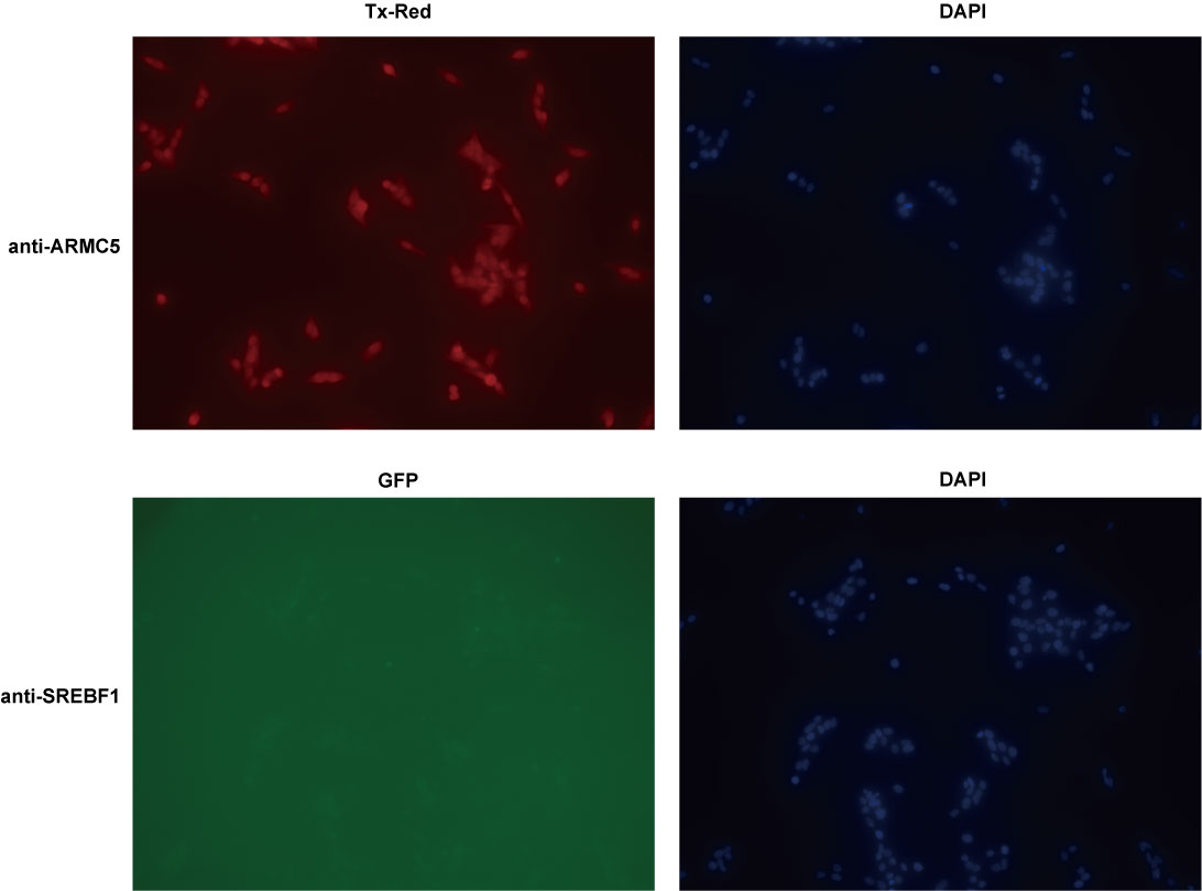 ・ARMC5:Alexa Fluor 555 anti-rabbit IgG (invitrogen, A21429), 1/500希釈