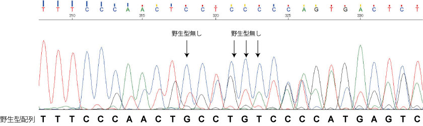 ・Pnpla2 GRE2:4/32クローンに変異→1/4クローンが、野生型の配列を持たず(下記)