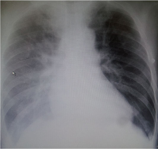 胸部Xp(臥位):右肺胸水